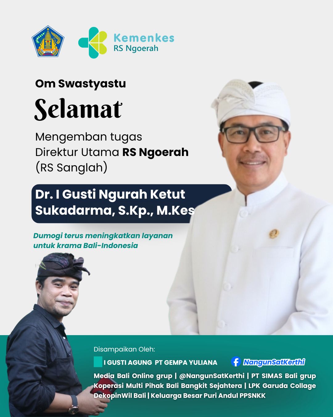 “Semoga amanah dalam menjalankan tugas, serta senantiasa diberi kesehatan, kebijaksanaan, dan keberhasilan dalam memajukan pelayanan kesehatan rujukan di Bali – Indonesia,” ungkap Agung Gempa.